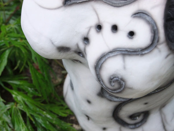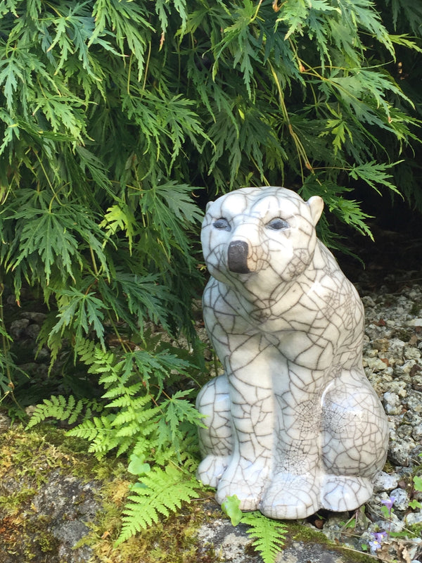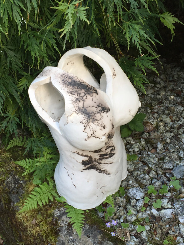 Mel’s sculpture is a combination of both regular fired stoneware but also the ancient Japanese technique of Raku Firing, dating back thousands of years. Raku originates in the ancient Japanese Tea Ceremonies and means ‘ease and enjoyment’. The name Raku was bestowed on the family who created the tea vessels for the emperor and this still continues to this day.