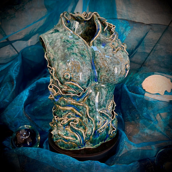 She creates not only functional ware but also sculpts anything from the magic of the human body to the oceanic myths and legends of mermaids and the deep ocean.
